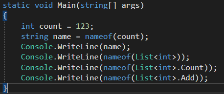 C# 6.0에서 추가된 개념으로, 임의의 기호(형식, 멤버, 변수 등)의 이름에 해당하는 문자열을 돌려준다.