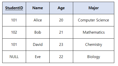 8. 다음은 무결성제약조건에 대한 문제이다. 아래 표에서 어떠한 ( ) 무결성을 위반하였는지 작성하시오.