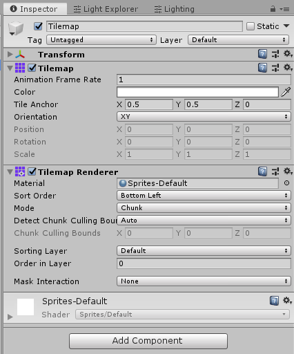 타일맵을 위한 콜라이더를 유니티에서는 이미 제공하고 있다. 타일맵 콜라이더 2D 컴포넌트(Tilemap Collider 2D Component)가 바로 그것이다.